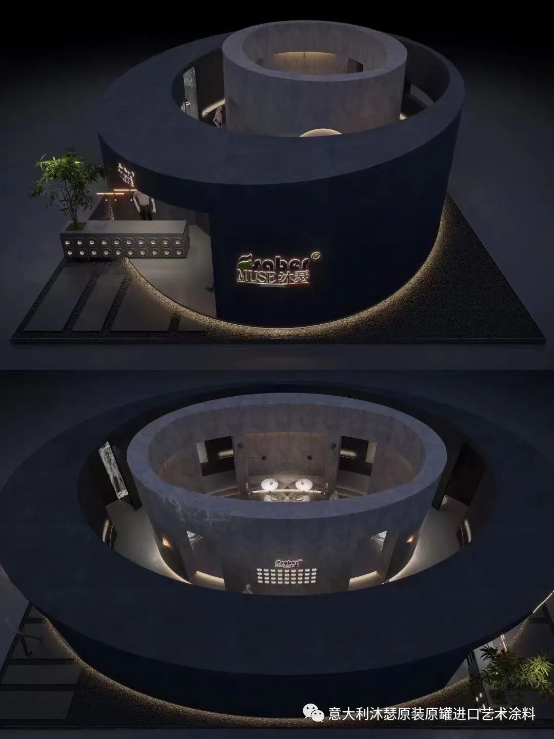 整个展馆以米灰色和深灰色为主色调,给人传达一种舒适的、环保的、绿色健康的居住环境;放下压力,远离城市的喧嚣,遨游在浩瀚星辰下,独享一方宁静,让心灵沉淀,让思绪飘扬,感受当下的静谧美好!