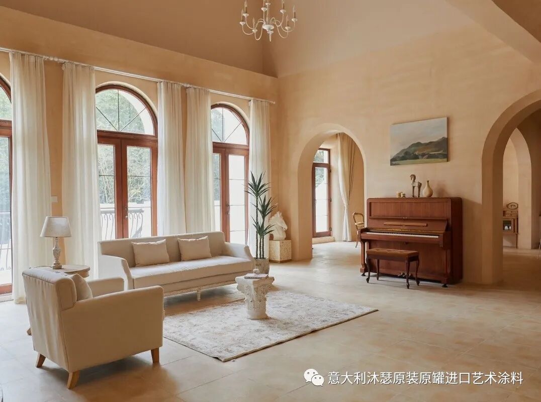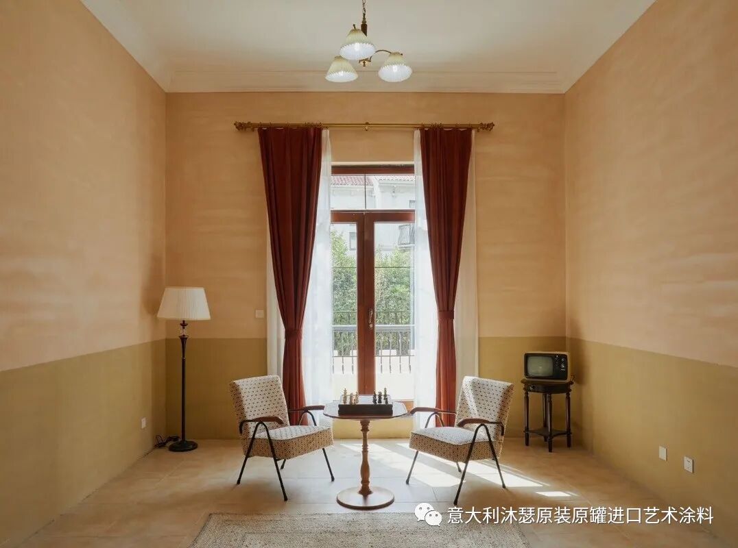 There is a very simple European style manor in Yihui Road, Qingpu District, Shanghai. As a shooting base, the designer combines the quiet and ethereal nature with the shooting environment, and the Muser art paint makes the Italian style simple and beautiful.